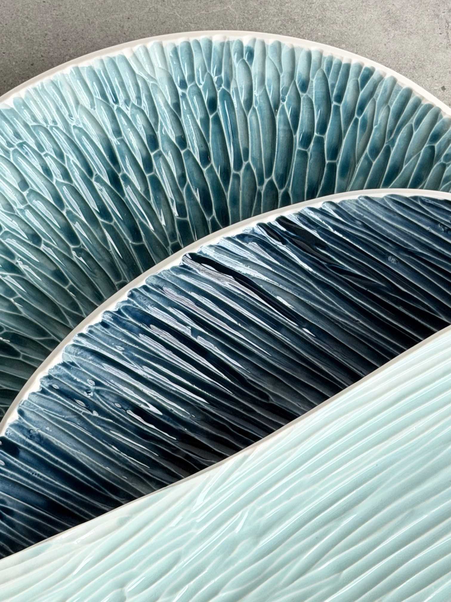 Geprägt von meiner maritimen Herkunft übersetze ich natürliche Prozesse wie Wellen, Strömungen und Wind in den Werkstoff Porzellan und entwickle daraus individuelle Formen und Oberflächen.
