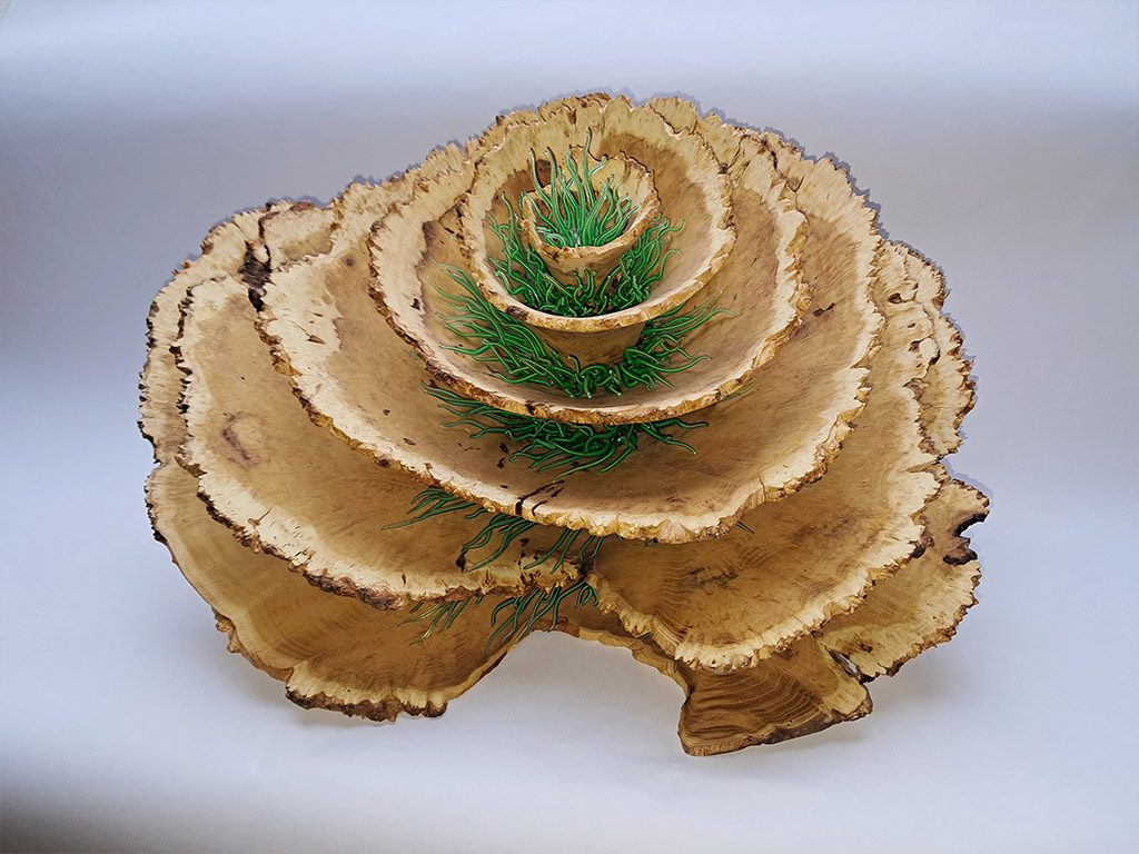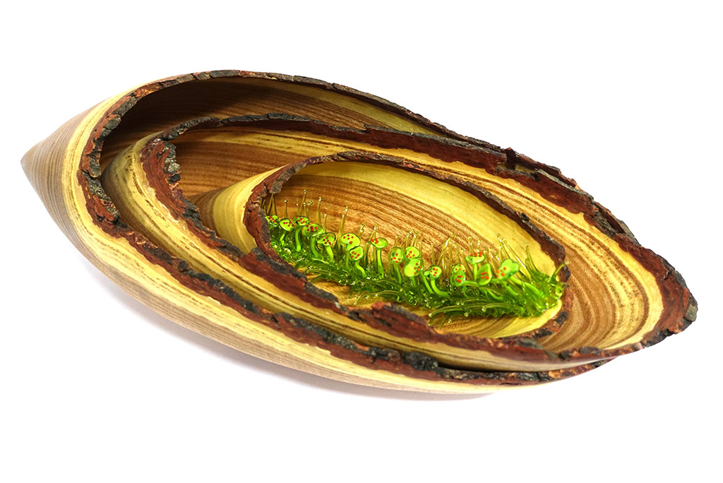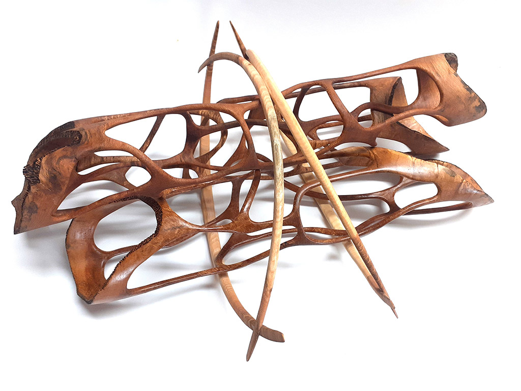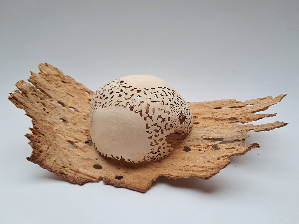 Seit 2022 arbeite ich regelmäßig mit der französischen Glaskünstlerin JULIE GONCE zusammen wobei völlig neue einzigartige Kombinationen von Glas und Holz entstehen. Seitdem sind wir regelmäßig auf Ausstellungen in den Niederlanden, Luxembourg, Belgien und Frankreich unterwegs. Ausstellungen wie die Revelation in Paris, die Valentiny Foundation in Luxembourg, die Resonance in Straßburg , oder der Salon des Beaux Arts in Paris, wo wir im Dezember 2025 die Goldmedaille in der Rubrik Sculpturen gewonnen haben, sind nur einige unserer Stationen.
